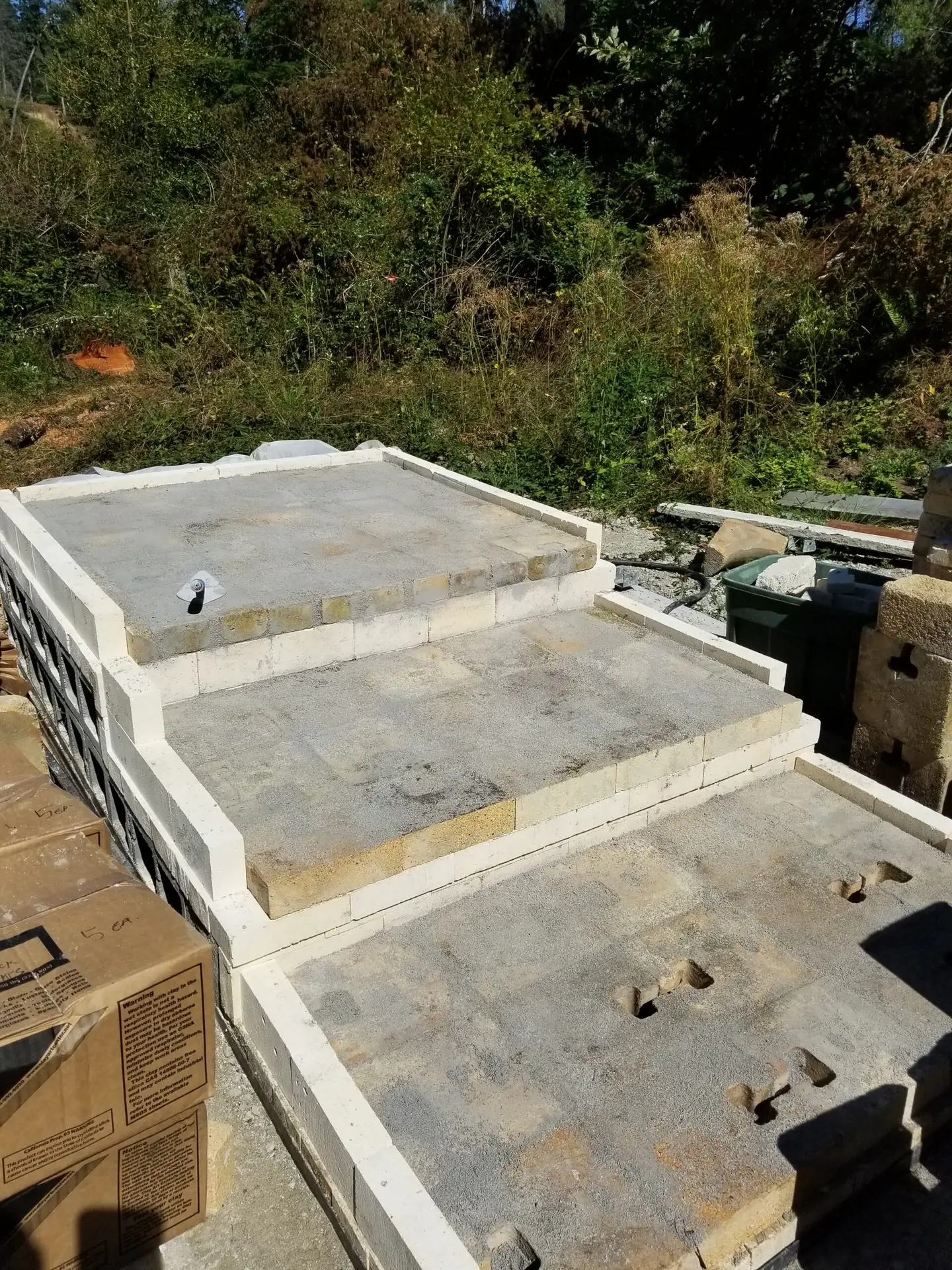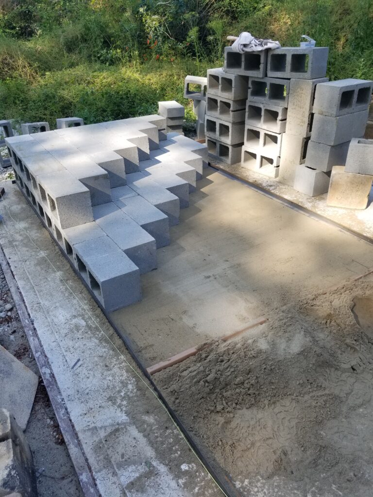 The slab was cast and a thin level of sand screeded to make sure the cinder blocks were fully supported. Cinder blocks are always turned on their side so that heat doesn't accumilate in them causing degradation.