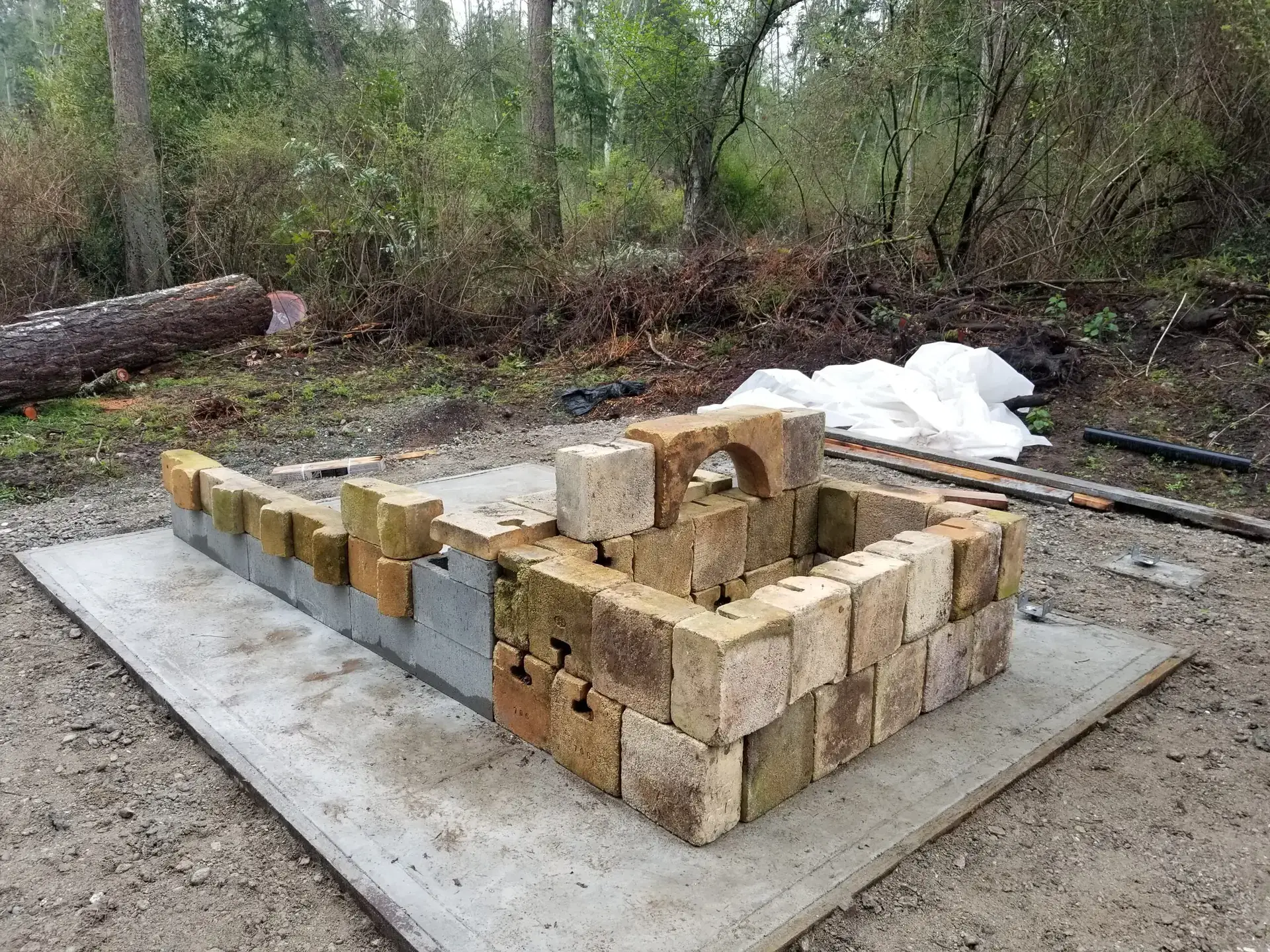 Fire bricks were source free from a boiler repair company that got them at an auction, but discovered that they could not use them. Assorted bizarre shapes and sizes caused us to build a sprung arch, as it was the best use of them.