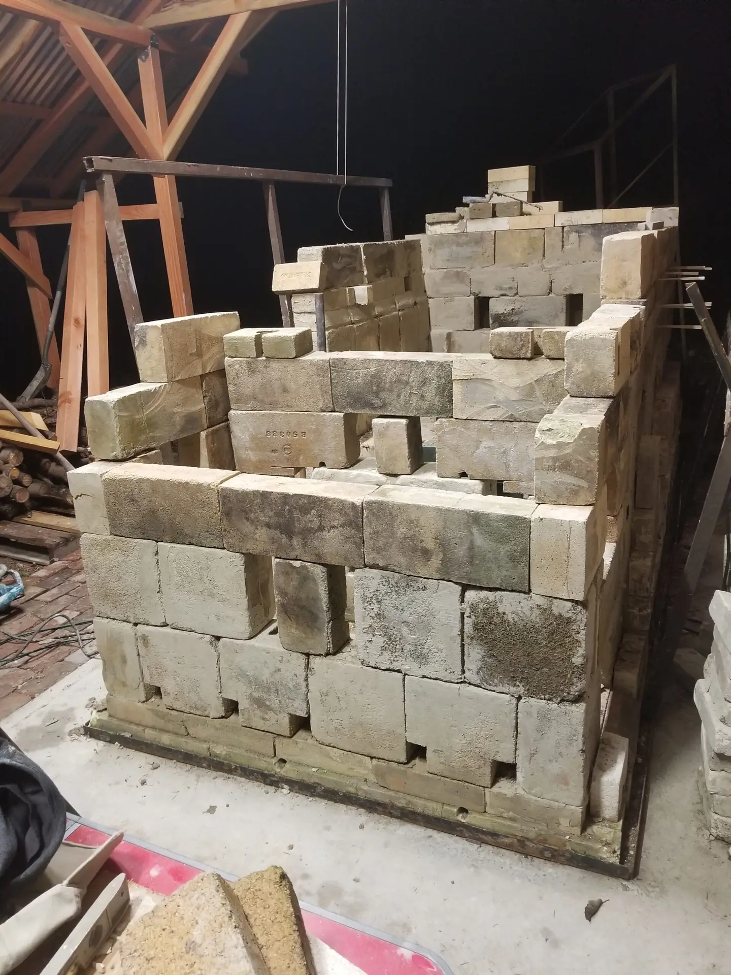 The large bricks I got for free were dry stacked in various configs to see what would be the best, and the plan modified. Chuck Hines was invaluable as a consultant on design flaws. If he wasn't there, the kiln never would have worked